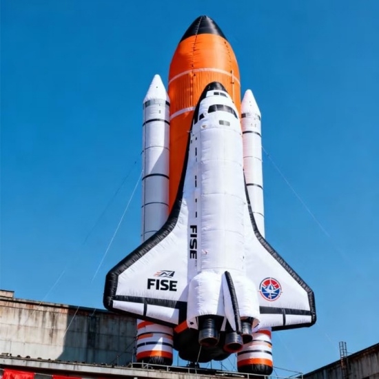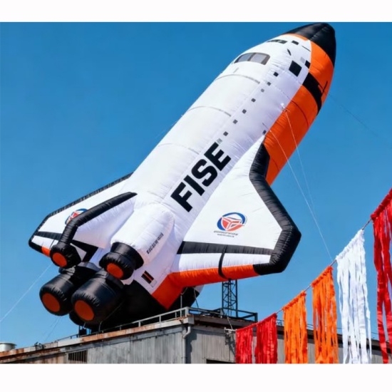 This giant inflatable space rocket features a vibrant, cartoon - like design with bold color blocks. Perfect for outdoor events, aerospace exhibitions, or promotional campaigns, it stands out as an eye - catching display. Made of durable PVC, it can be tethered securely and draws crowds with its whimsical space - themed charm.